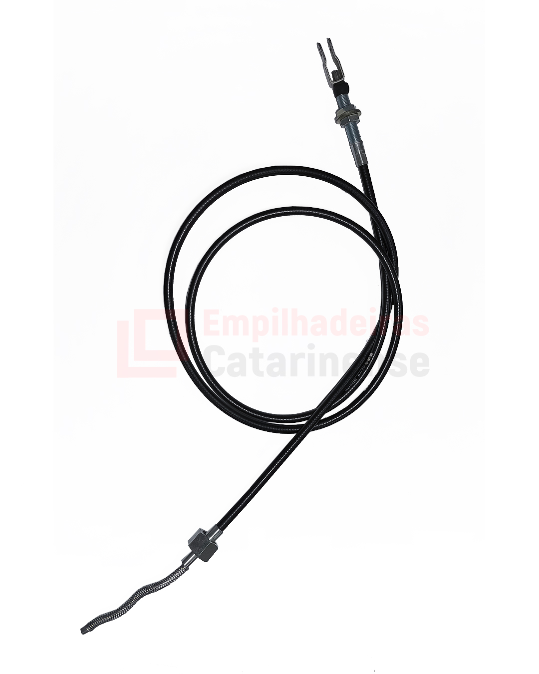 Cabo do freio de mão para empilhadeira desenvolvido para transmitir o acionamento mecânico da alavanca ou pedal até o conjunto de freio. Projetado para assegurar o travamento eficiente e seguro do equipamento durante a condição de estacionamento, garantindo confiabilidade operacional e durabilidade em ambientes industriais.