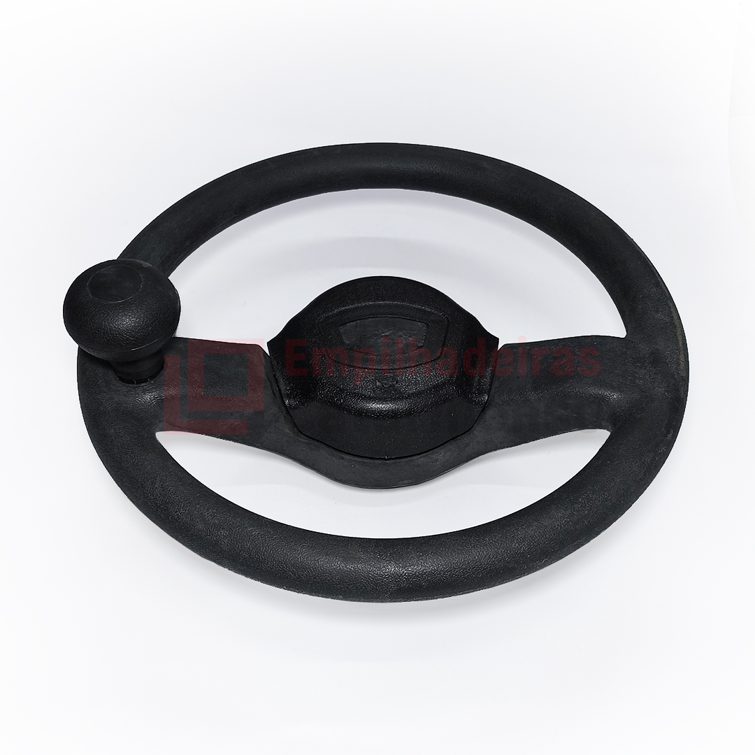 Volante M25 é um componente do sistema de direção utilizado pelo operador para controlar a trajetória do veículo ou equipamento. Sua função é transmitir os movimentos das mãos do operador ao mecanismo de direção, permitindo o controle preciso e seguro durante a operação.